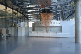 Mit EPHEMERE zieht ein glanzvolles Lichtobjekt in den Space05 ein, der für vorweihnachtliche Vermietungen und Feste leergeräumt wurde. Der luxuriöse Luster wurde von der multimedial arbeitenden deutschen Künstlerin Julia Bornefeld geschaffen und thematisiert mehrdeutige Eigenschaften zwischen Formen der Funktionalität (als Lampe bzw. vermietbarer Raum), als Schmuckobjekt, als Lichtskulptur und wirkt auch – durchaus konsumkritisch – als ortsspezifische Intervention im „freien“ Kunstraum.