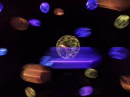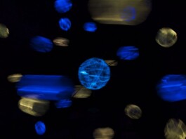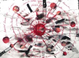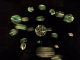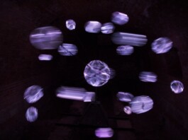 Die Installation „Ariadne`s Asteroidenschleuder“ ist eine, sich an einem Motor drehende „Himmelsmaschine“, entwickelt für eines der stillgelegten dunklen Arsenale der Franzensfeste zur „Landesausstellung Labyrinth: Freiheit“, Südtirol 2009.Das rotierende Lichtobjet ,wird von „Sphärenklängen“ eingehüllt, einem eigens komponierten Musikstükes der Gruppe „Sense of Akasha“. Das Cello, als zentrales Instrument eingesetzt, spinnt einen akustischen Ariadnefaden, den „roten Faden „in den siebten Himmel der Ariadne“ und somit zieht sich auch ein tatsächlicher „roter Faden“ durch mein Werk.